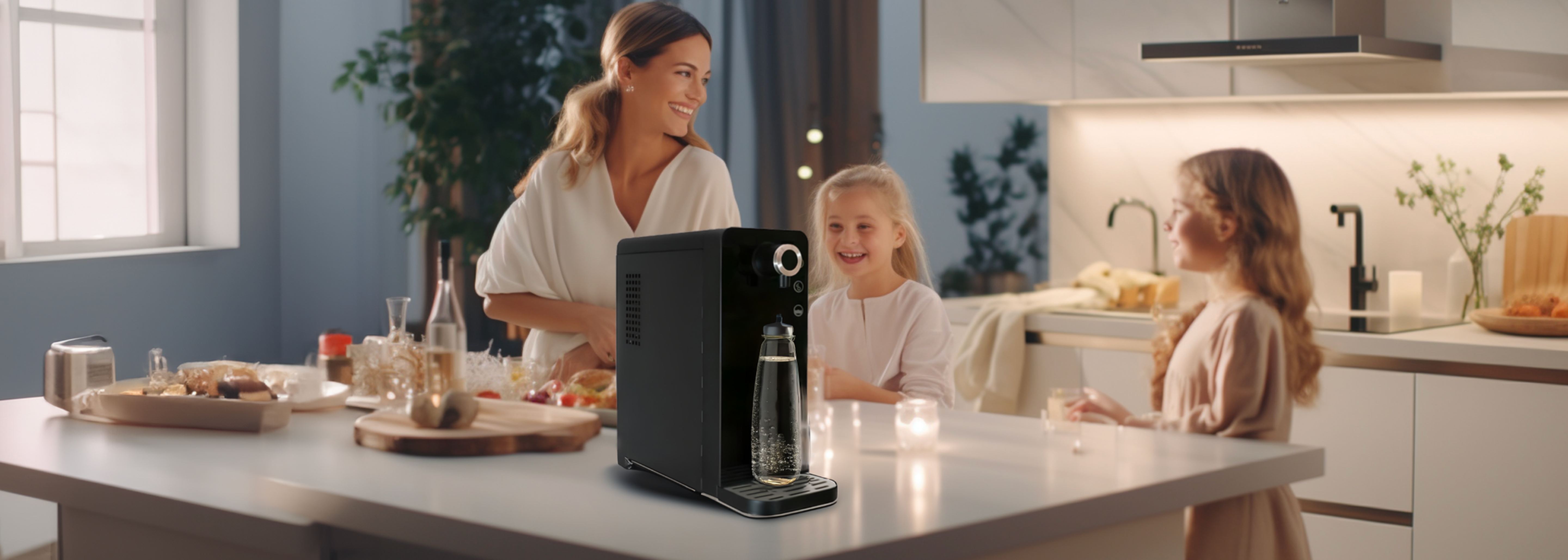 Endless ultra-purifiedwater: Powered by reverse osmosis or ultrafiltration, the Aquila Pro offers ambient, chilled, and sparkling water modes for pure refreshment.